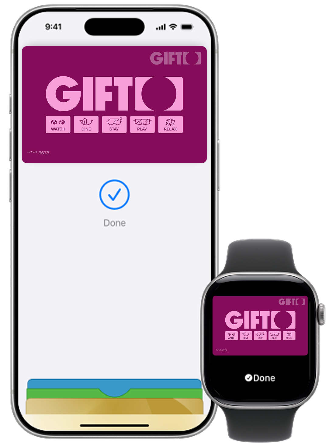 Apple Pay lets you use your GIFTO in stores, online and in apps using your iPhone or Apple Watch — no physical card needed.